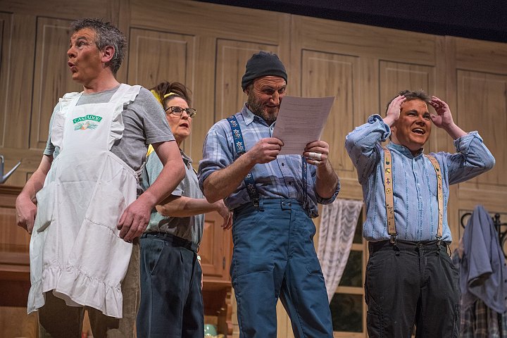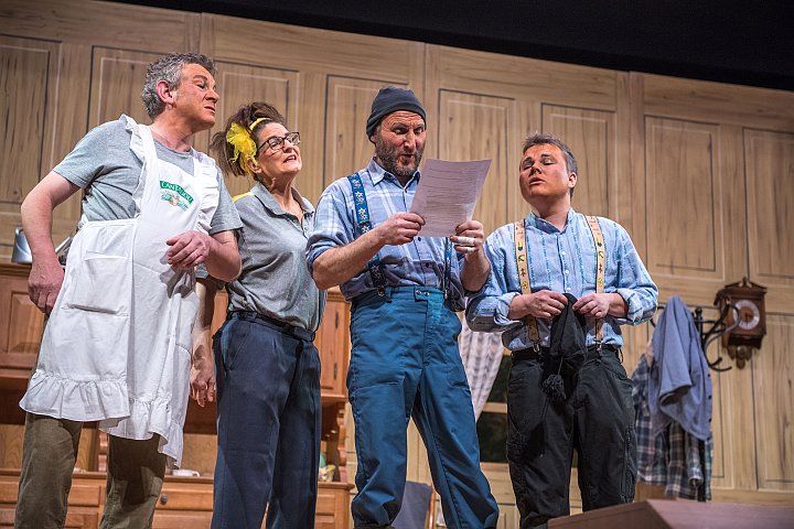 DSC_5037.JPG: Göpf Hürlimann (Bruno Unternährer), Elsbeth Specht (Sonja Lustenberg), Franz Hürlimann (Roland Schmid) und Hansjakob Hürlimann (Simon Unternährer) |