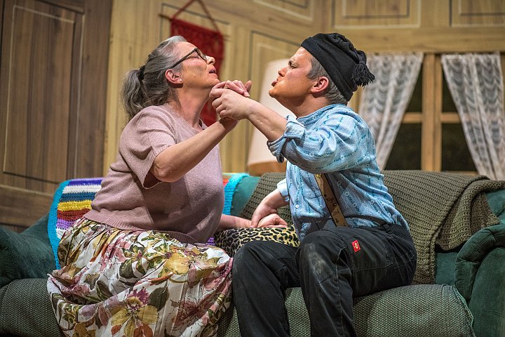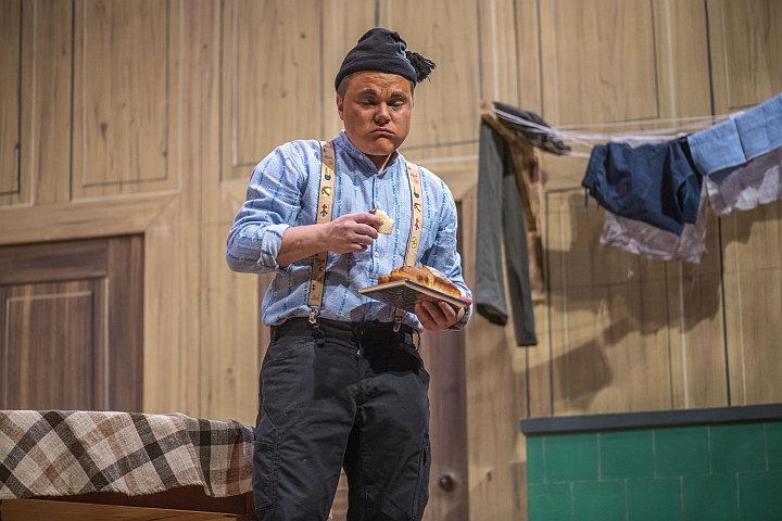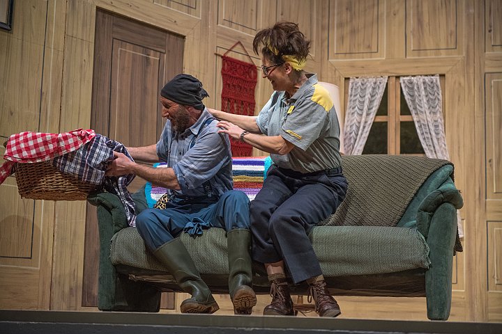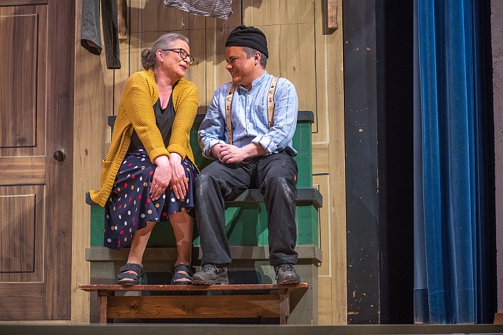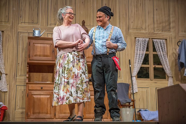 DSC_5081.JPG: Hansjakob Hürlimann (Simon Unternährer) und die Nachbarin Rosmarie Heinzer (Sanndra Stadelmann) kommen sich näher... |