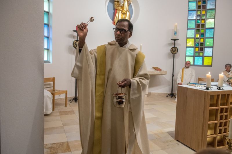Am Sonntag war die Kapelle bis auf den letzten Stuhl und hereingetragenen Sitzbänken besetzt. Der leitende Priester des Pastoralraums Region Willisau, Kulandaisamy Fernando, zelebrierte die Eucharistiefeier. Vorher aber segnete und besprengte er den Altar, Ambo und die Kapelle sowie die Gottesdienstbesucherinnen und -besucher mit Weihwasser. Musikalisch umrahmt wurde der Festgottesdienst vom Kirchenchor St. Johannes unter der Leitung von Irène Hofstetter. An der Orgel spielte Trudy Heini.