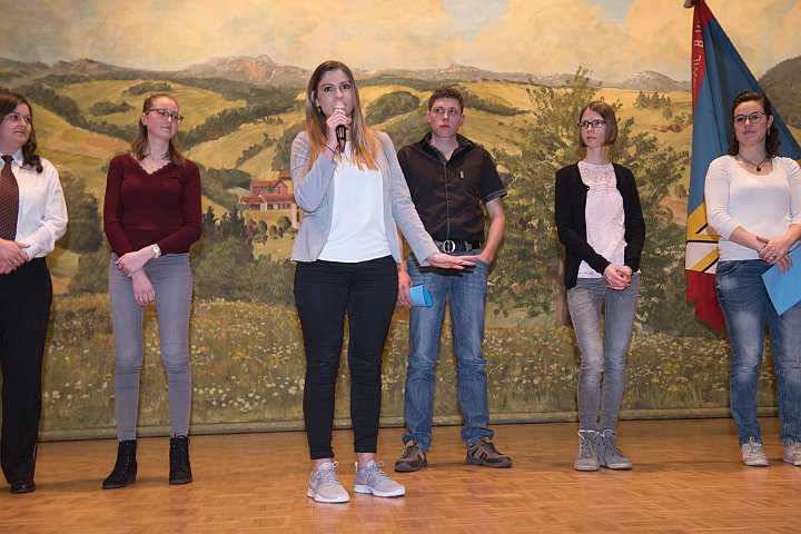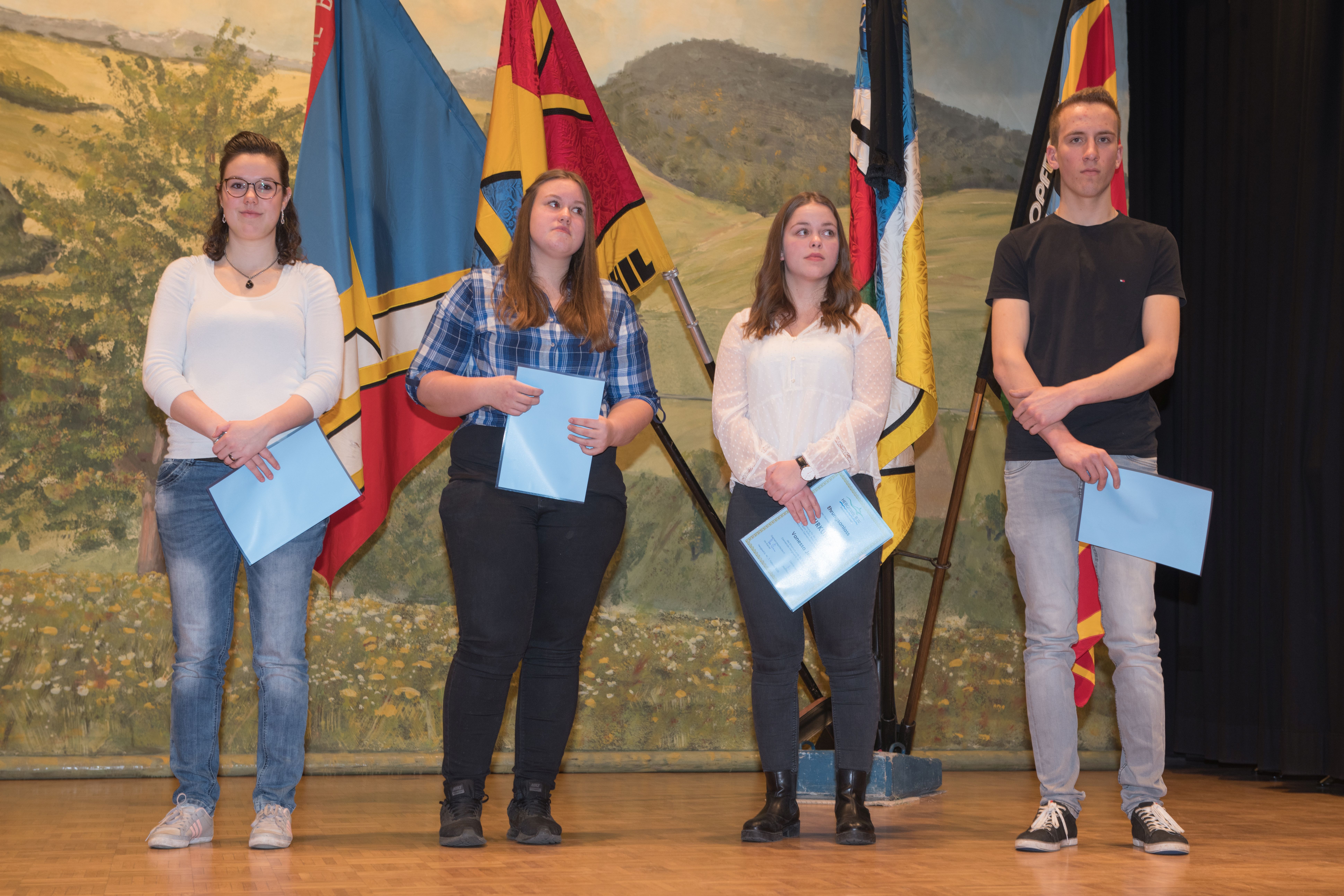 DSC_5160: Martina Christen, Manuela Marti, Vanessa Jenni und Remo Ambühl schlossen ihre Berufslehre mit der Ehrenmeldung ab.