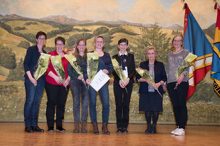 DSC_5196.JPG: Ehemalige Präsidentinnen und die aktuelle Präsidentin des Frauenvereins wurden mit einer Rose beschenkt.