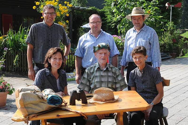 Der Gemeinderat, welcher in Sennenhemden erschienen war, kam nicht mit leeren Händen. Sozialvorsteherin Anna Christen überreichte dem Jubilar die obligate Gratulationskarte, Gemeinderat Markus Kunz einige Flaschen Wein und Gemeinderätin Renate Ambühl eine wunderschöne Orichidee. Der Jubilar lud seine Gäste zu einem reichhaltigen Imbiss ein, an dem viel erzählt und gelacht wurde.