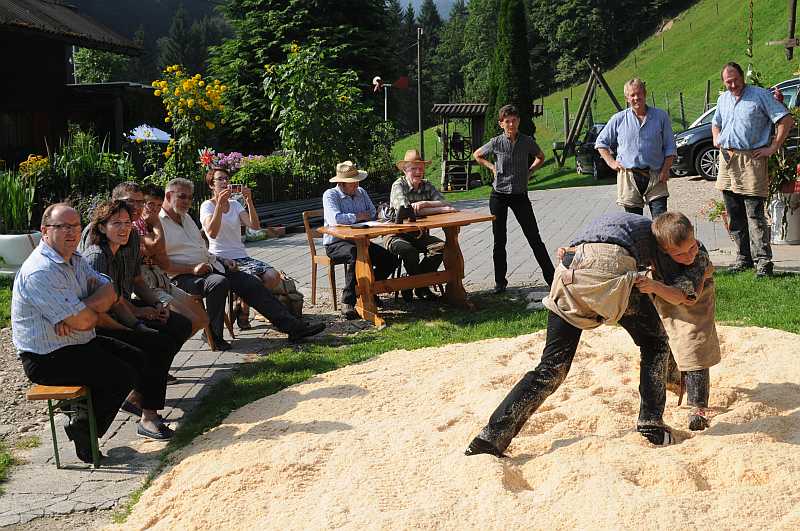Brüder Silvan und Fabian Aregger demonstrieren einen Bubenschwinget.