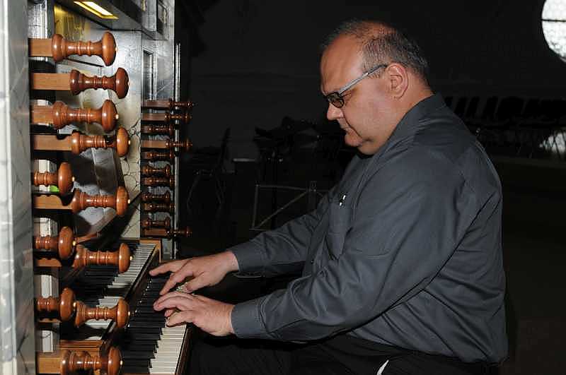 Der Willisauer Pfarrer Martin Walter spielt auf der Orgel.