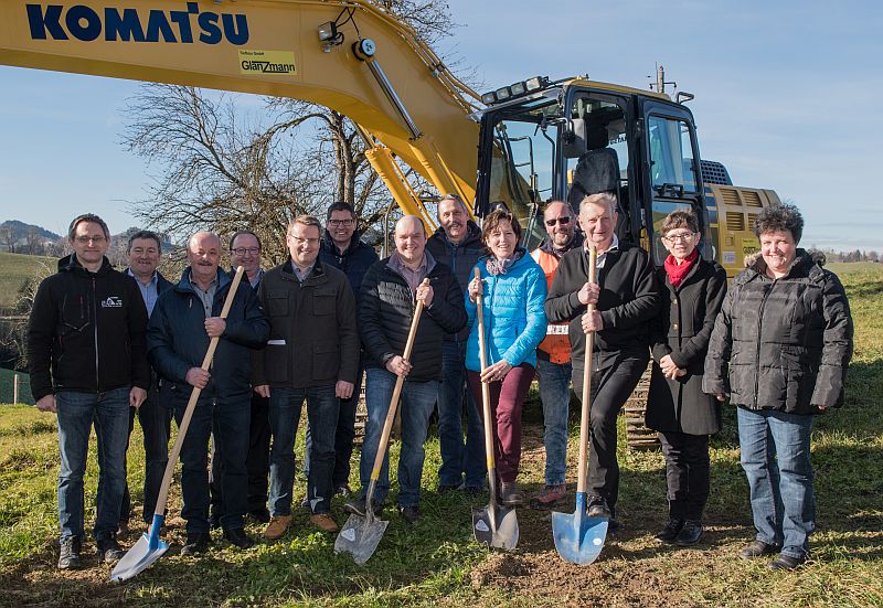 Siegfried Glanzmann dankte für den Auftrag und wand dem Gemeinderat ein Kränzchen für seine Weitsichtigkeit in Bezug auf die Erhaltung oder den Neubau von Gebäuden. Er lud hierauf die Versammelten zum Spatenstich und zum Apéro ein.