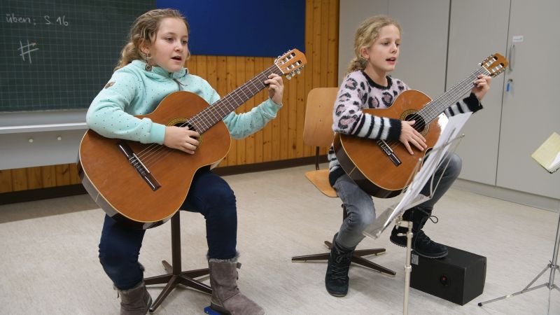 Das «S Hergiswiler Läbe» lässt in ihren Ausgaben 2022 jeden Monat Musik von Hergiswiler Musikschülerinnen und -schüler erklingen. Den Beginn machen die Drittklässlerin Lina Burri (links) und die Viertklässlerin Giulia Benz. Sie singen das Schweizer Volkslied «Es wott es Fraueli z Märit gha» und begleiten sich gleich selbst auf der Gitarre. Erstaunlich, was die beiden Mädchen im Musikunterricht bereits gelernt haben, besuchen sie doch den Gitarrenunterricht bei ihrem Gitarrenlehrer Roland Stadelmann erst seit Beginn des Schuljahres 2021/22.