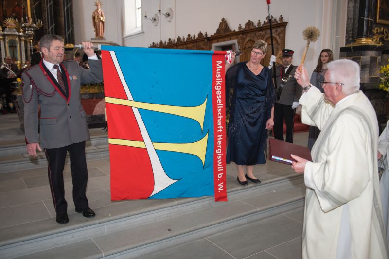 In seiner Festpredigt zog Hubert Schumacher eine Parallele des harmonischen Zusammenspiels einer Musikgesellschaft zu den harmonischen Beziehungen in der Familie, am Arbeitsplatz, in Schulklassen und im Freundeskreis. «Zeigen wir Flagge als Mitglieder der Musikgesellschaft Hergiswil, zeigen wir aber auch Flagge als Christen! Daran möge euch die Fahne immer wieder erinnern», ermahnte er die Anwesenden.