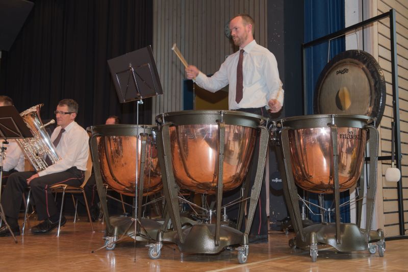Grosses Kino boten die Brüder Marcel und Christian Mehr sowie Ueli Riedweg auf den nigelnagelneuen Perkussionsinstrumenten, welche einen Wert von rund 40‘000 Franken haben. Für einmal standen diese Instrumente nicht versteckt im Hintergrund, sondern durften ganz vorne auf der Bühne stehen. Die drei Perkussionisten boten eine eindrückliche Demonstration ihres Könnens, gaben alles und boten feinste Schlagzeugmusik. Da staunte das Publikum ob so viel Virtuosität der Schlagzeuger. Ein lange anhaltender Applaus war der wohlverdiente Lohn.