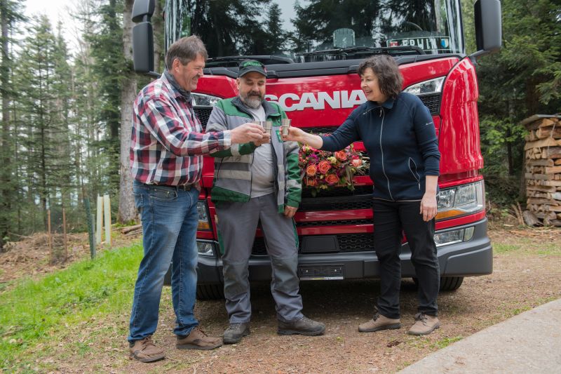 Am Samstag, 23. April 2022, wurde der Laster in einem Wald von Roland Müller zum ersten Mal mit Holz beladen. Dessen Vater, Franz Müller, verlieh diesem Ereignis einen würdigen Rahmen. Nach dem Beladen des Lasters überraschte er Lukas und Maja Birrer sowie Erwin Lustenberger mit einem Znüniplättli. Der Chauffeur Erwin Lustenberger und Franz Müller gratulierten Maja und Lukas zum neuen LKW und wünschten den beiden viel Glück mit dem neuen Fahrzeug.