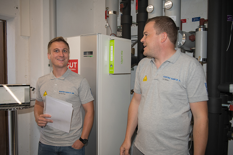 Marcel Wermelinger (links) und Toni Walthert informieren über die Energiegewinnung mittels Photovoltaik und Erdwärme.
