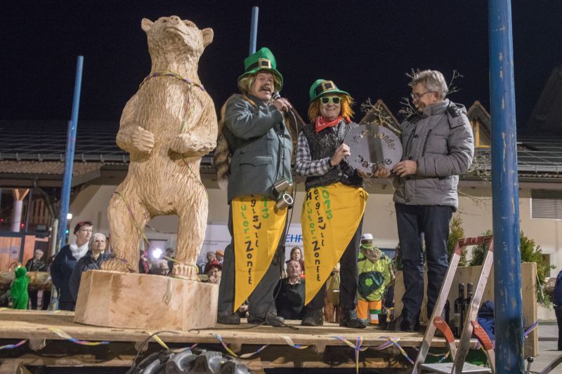 Die wunderschöne Holzeule ersteigerte Petra Suppiger, Präsidentin des Fasnachtsvereins Menzberg, für 335 Franken. Die grosse Bären-Skulptur, welche Martin Theiler im Voraus geschnitzt hatte, ging nach einer zäh verlaufenen Auktion schliesslich für 850 Franken an Maja Birrer und kann fortan bei der Sägerei Birrer bestaunt werden. Zu guter Letzt ersteigerten einige ehemalige Änzischränzer die von den Gebrüdern Beat und Josef Staffelbach gespendete 24 Meter lange Weisstanne mit einem Volumen von 4,3 Kubikmetern für 1300 Franken. Stephan Schärli betonte, dass es toll sei, dass in Hergiswil an der Fasnacht etwas laufe und die Dorfbevölkerung mitmache. Er schloss seinen Dank mit den Worten: «Auf Wiedersehen, wenn es im nächsten Jahr wieder ‹Tanneschleipfete› in Hergiswil heisst.»