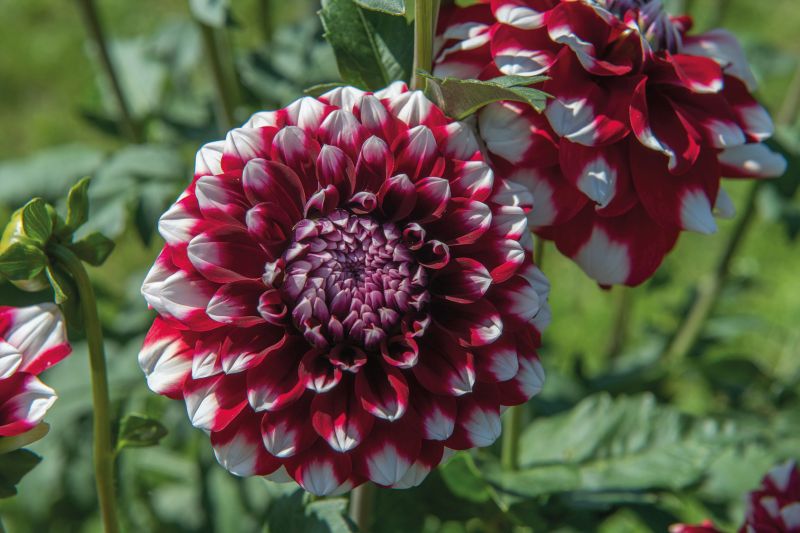 Frontseite: Checkers, rot mit weissen Spitzen, gute Schnittsorte. Nicht nur das. Diese Dahlie hat auch die gleichen Farben wie die Nationalfahne der Schweiz und passt deshalb ausgezeichnet zum 1. August. Die Schweizer Flagge hat als besonderes Merkmal ihre quadratische Form. Neben derjenigen des Vatikans ist sie die einzige Flagge auf der Welt mit diesem Format. Dafür unterscheiden sich Wappen und Flagge der Schweiz nicht wie in anderen Ländern: es bleibt stets die quadratische rote Flagge mit weissem Kreuz.