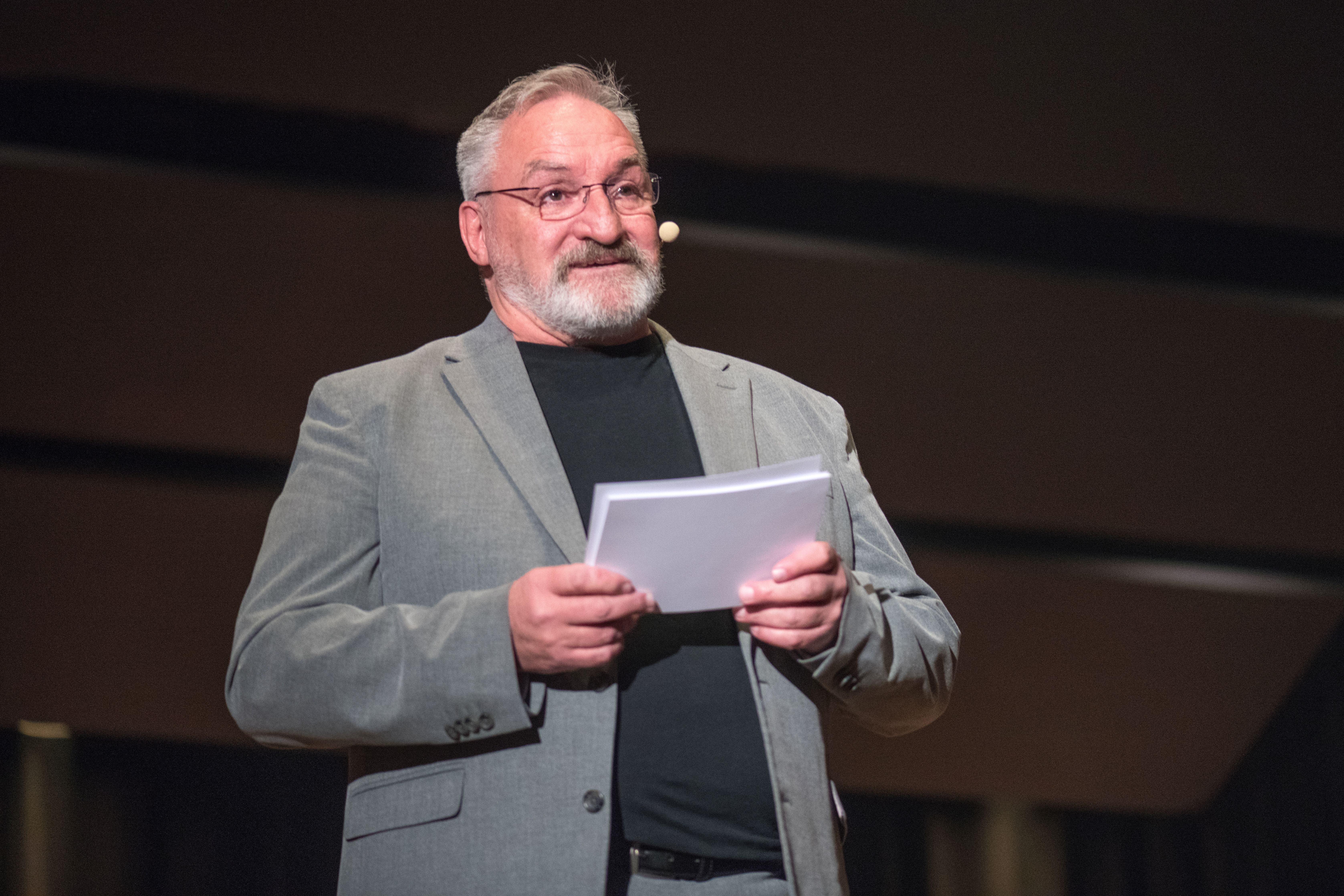 DSC_1402.JPG: Moderator Stephan Schärli führt professionell durchs Konzertprogramm