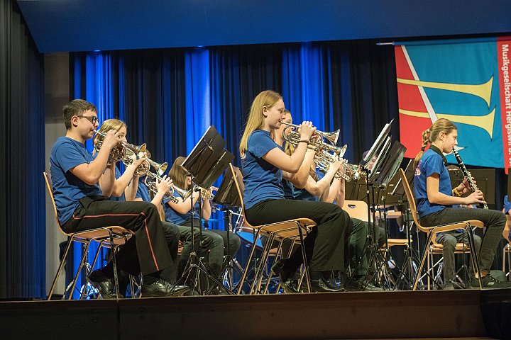 DSC_1476.JPG: Die Jugendmusik unter der Leitung von Remo Freiburghaus eröffnet das Jubiläumskonzert