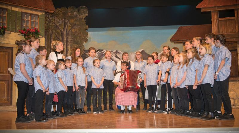 Der Jodlerklub Enzian muss nicht um den Nachwuchs bangen. Die Enzianjutzerli setzen sich aktuell zu gefühlten 100 % aus Mädchen zusammen und es würde deshalb nicht erstaunen, wenn sich in einigen Jahren der JK Enzian aus mehr Frauen als Männern zusammensetzt. Die junge Ansagerin Kim Haas wies mit viel Schalk bei ihrer Ansage der hübschen Enzianjutzerli darauf hin, dass die grossen Enzianer «öppe d Ärmu hendere letze möi». Und in der Tat. Ein wahres Feuerwerk entzündeten die Enzianjutzerli, welche unter der Leitung von Caroline Haas und Christina Buchmüller stehen. Zu Herzen ging das Jodellied «E schöne Traum», komponiert von Hannes Fuhrer. Auch mit dem zweiten Lied «Uf hechä Bärge» hatten die Enzianjutzerli das Publikum ganz auf ihrer Seite. Natürlich forderte das Publikum ein Supplement, welches mit dem Lied «Macaroni Oho» von Oesch’s die Dritten gerne gewährt wurde. Begleitet wurden die Enzianjutzerli sehr einfühlsam von Jacqueline Christen am Akkordeon.